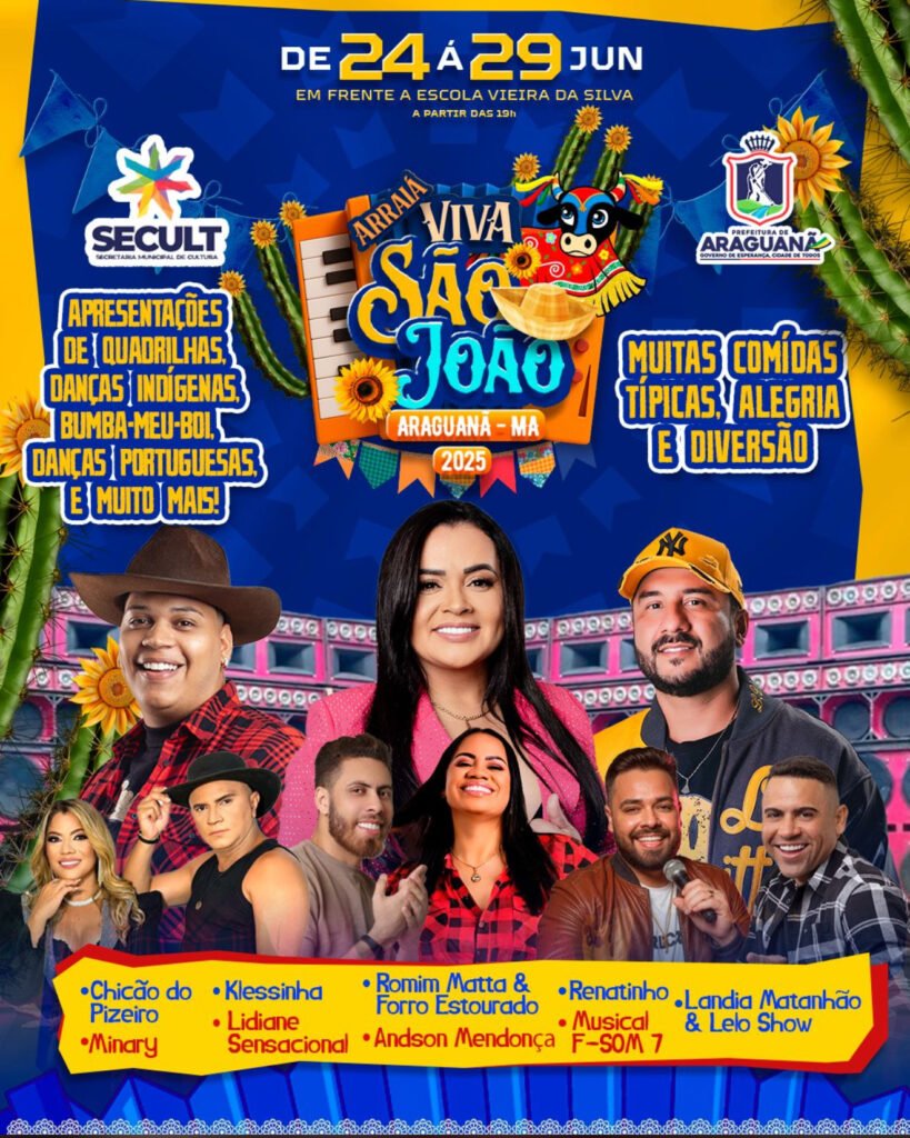 A cidade de Araguanã promete viver dias de muita festa, alegria e tradição com a chegada do São João 2025. A Prefeitura Municipal divulgou oficialmente a programação do evento, que este ano vem recheada de atrações de peso e promete atrair um grande público.