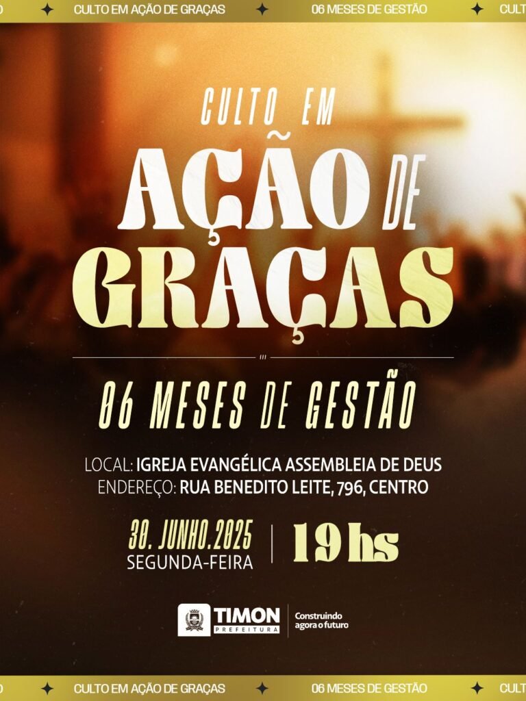 A cidade de Timon, no Maranhão, viveu uma noite de grande emoção e celebração nesta segunda-feira, 30 de junho, com o Prefeito Rafael Brito à frente de um culto de ação de graças na Assembleia de Deus. O evento, que marcou os seis primeiros meses de sua gestão, reuniu uma multidão de timonenses, demonstrando o carinho e o reconhecimento da população pelo trabalho que vem sendo realizado.