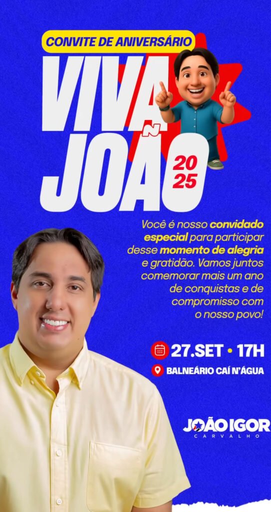 O pré-candidato a deputado estadual João Igor tem a honra de convidar Vossa Senhoria e família para uma celebração de aniversário cheia de alegria e gratidão.