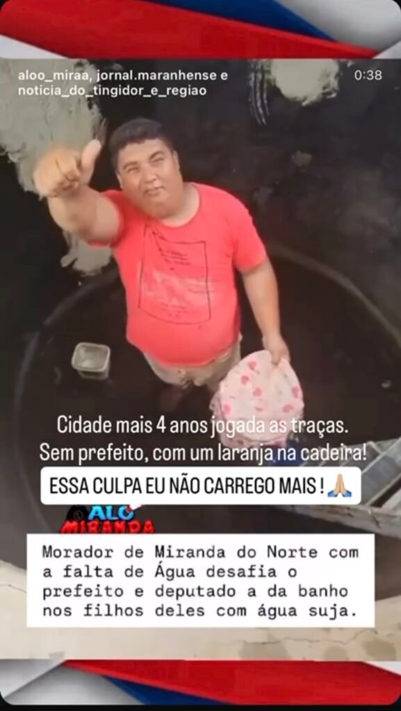 Durante o vídeo, o cidadão faz um convite direto ao prefeito do município, Ivaldo, e ao Deputado Federal Junior Lourenco: que ambos usem aquela mesma água para dar banho em seus próprios filhos.