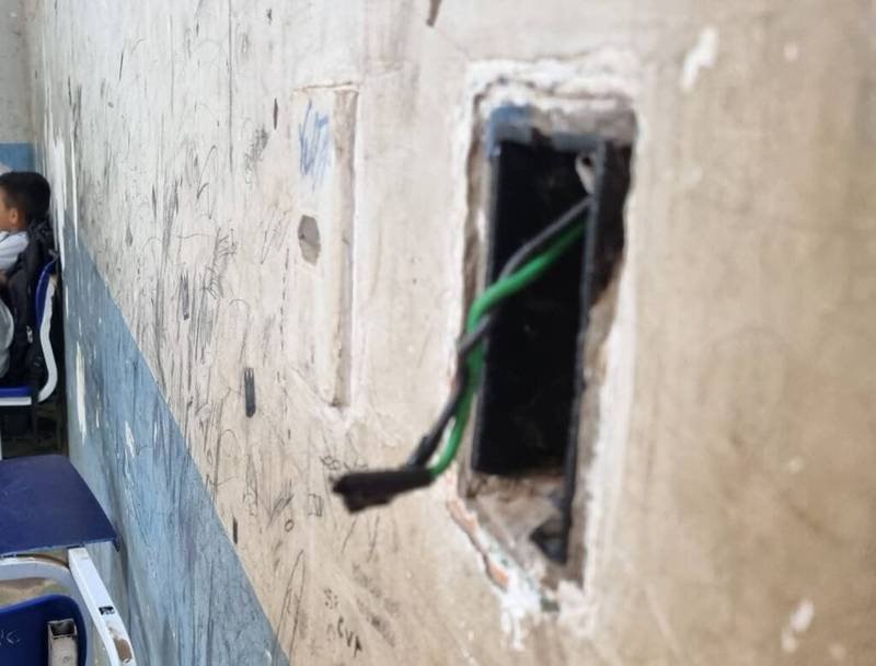 Denúncias feitas por mães de alunos revelam uma realidade alarmante: crianças estudam em um prédio que ameaça desabar. As paredes estão “rasuradas” e caindo aos pedaços, mas o perigo mais imediato reside na fiação elétrica. Com fios de energia expostos, o risco de um curto-circuito ou descarga elétrica em alunos e professores é uma ameaça constante.
