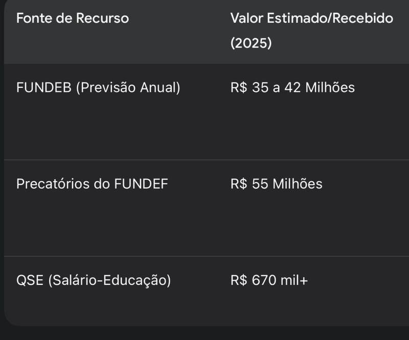 Enquanto a estrutura física da escola Leda Tajra se deteriora, os números mostram que a falta de recursos não deveria ser a justificativa. Somente no ano de 2025, a Prefeitura de São Domingos do Maranhão foi destino de repasses milionários carimbados especificamente para a educação
